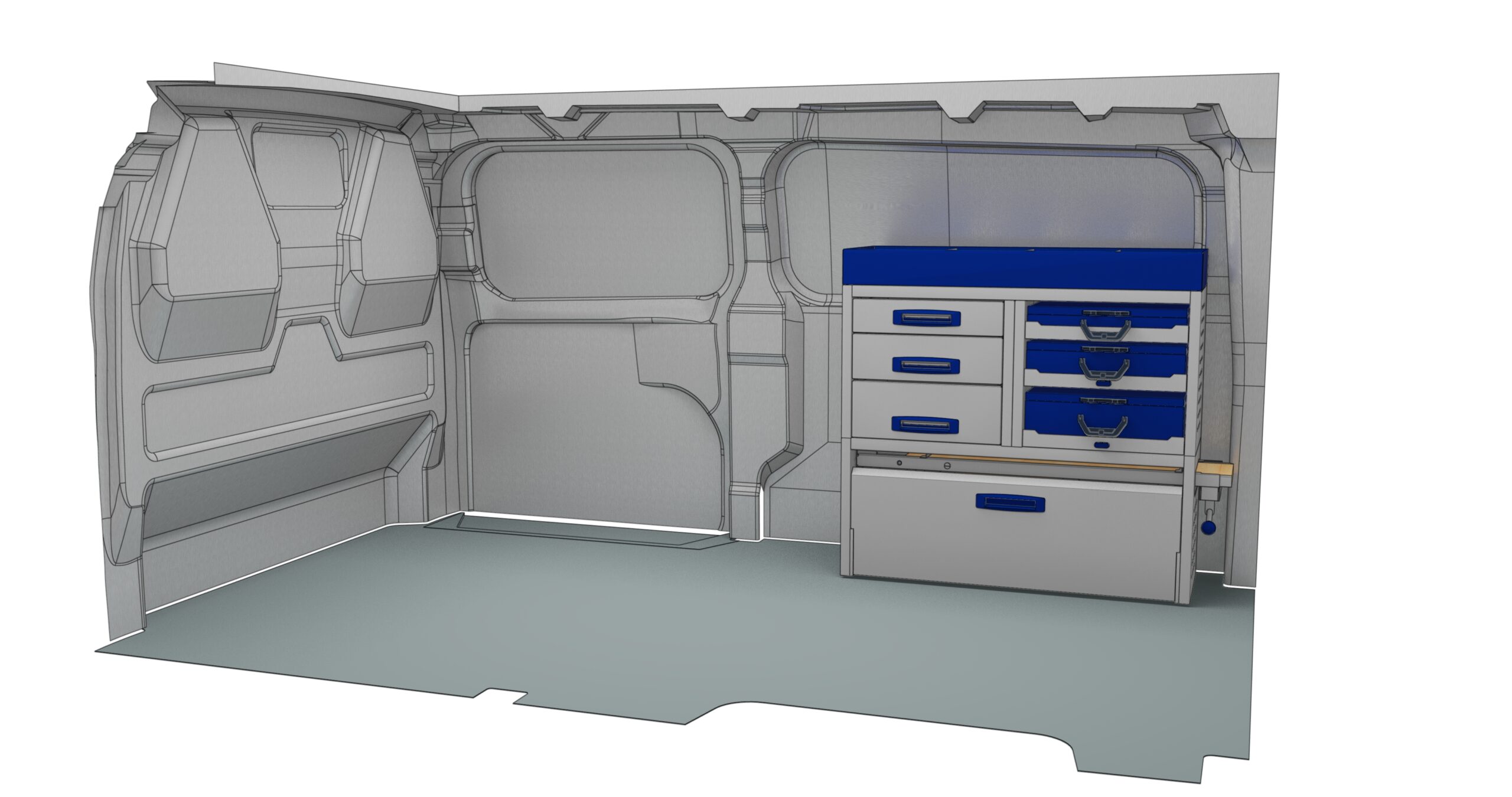 Unser Aktionspaket 2025-V3 für mittelgroße Transporter, bestehend aus einem linken und einem rechten Fahrzeugregal, ist die perfekte Fahrzeugeinrichtung.