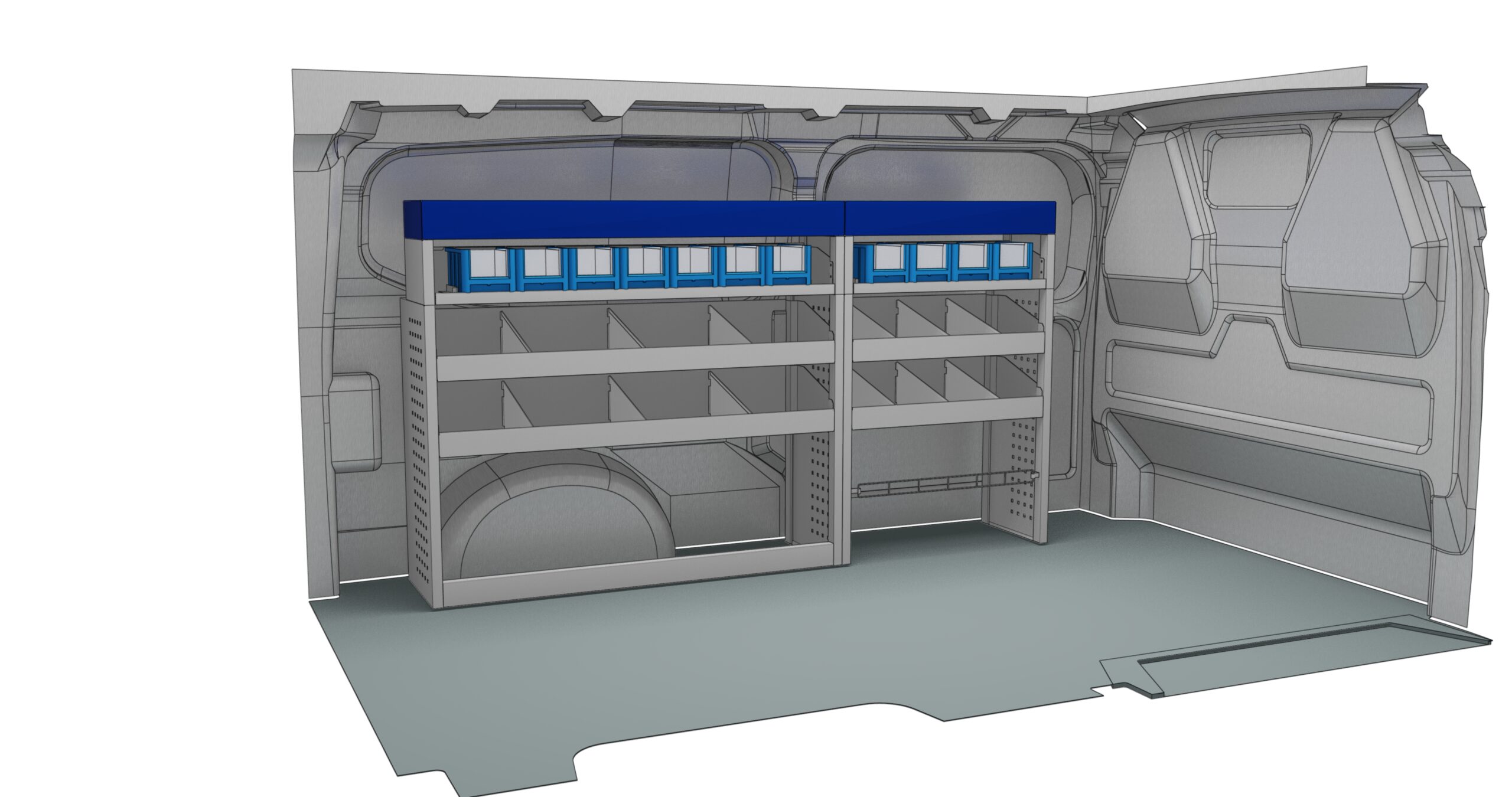 Unser Aktionspaket 2025-V4 für mittelgroße Transporter, bestehend aus einem linken und einem rechten Fahrzeugregal, ist die perfekte Fahrzeugeinrichtung.