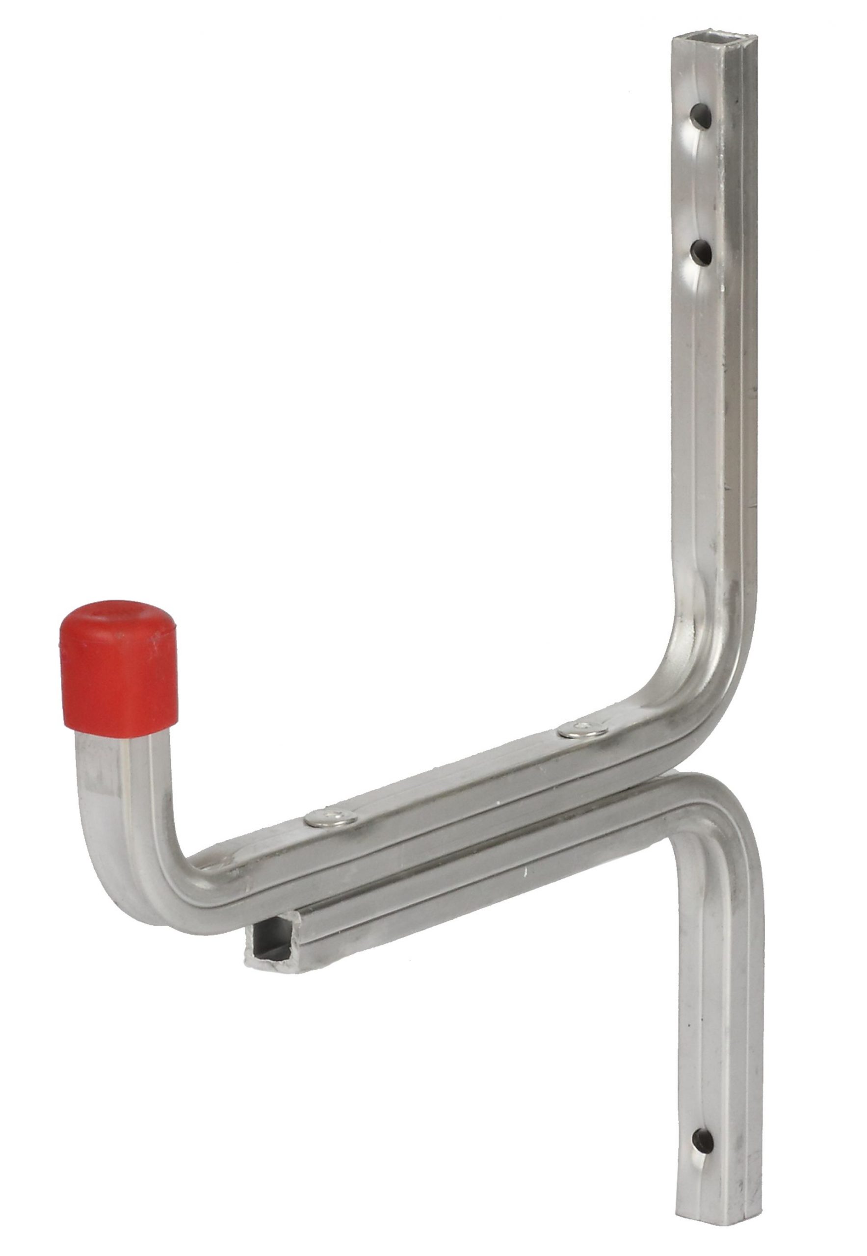 Den Leiterhaken aus verzinktem Stahl mit roter Kunststoffschutzkappe können Sie universell in Ihrem Fahrzeug oder Werkstatt einsetzen.