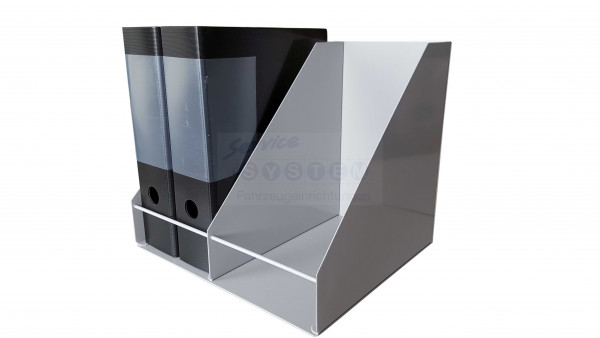 Die praktische Ordnerablage bietet platz für 4 Ordner mit einer Rückenbreite von 80 mm, somit haben Sie wichtige Unterlagen im Fahrzeug dabei.